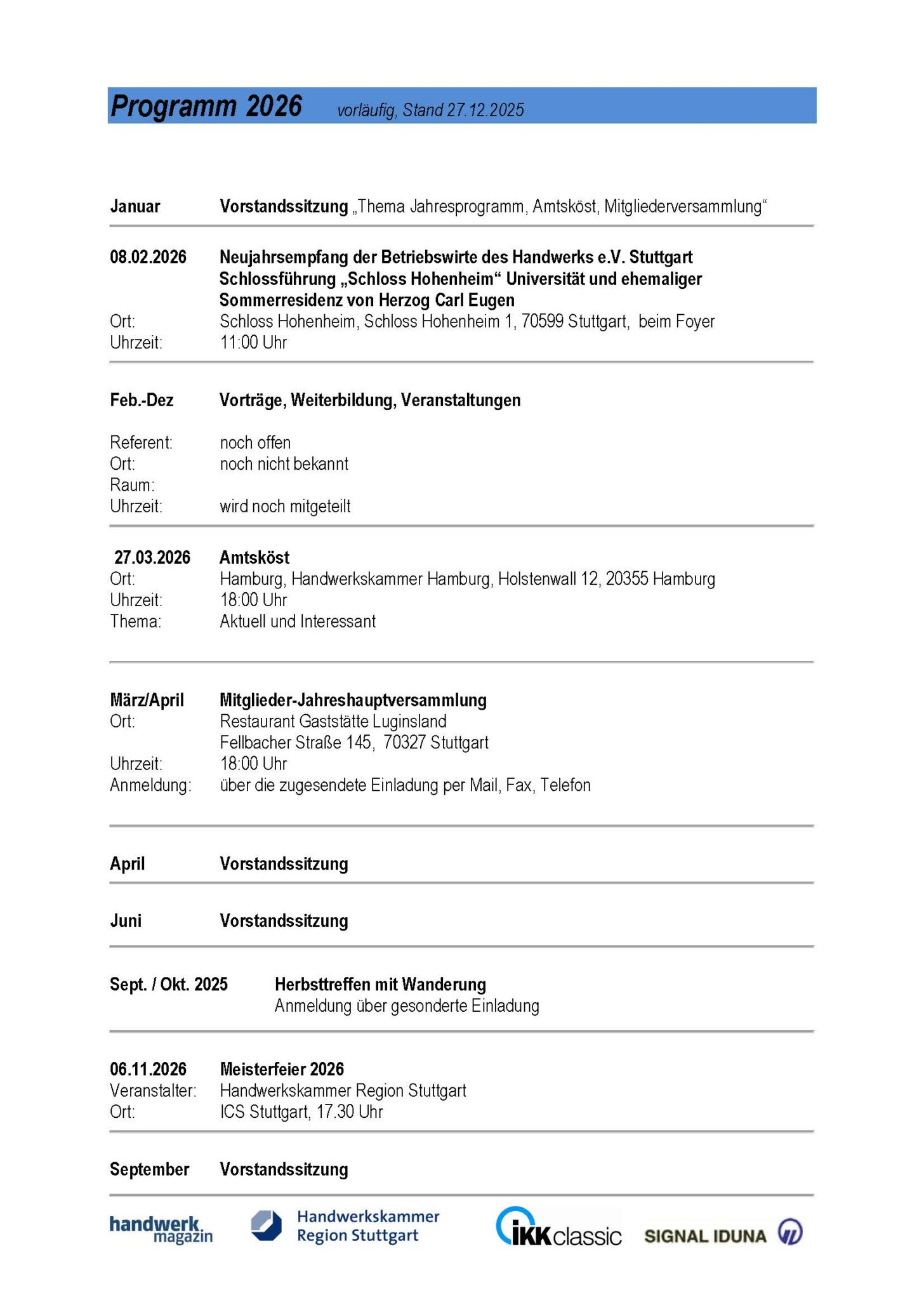 Jahresprogramm 2026